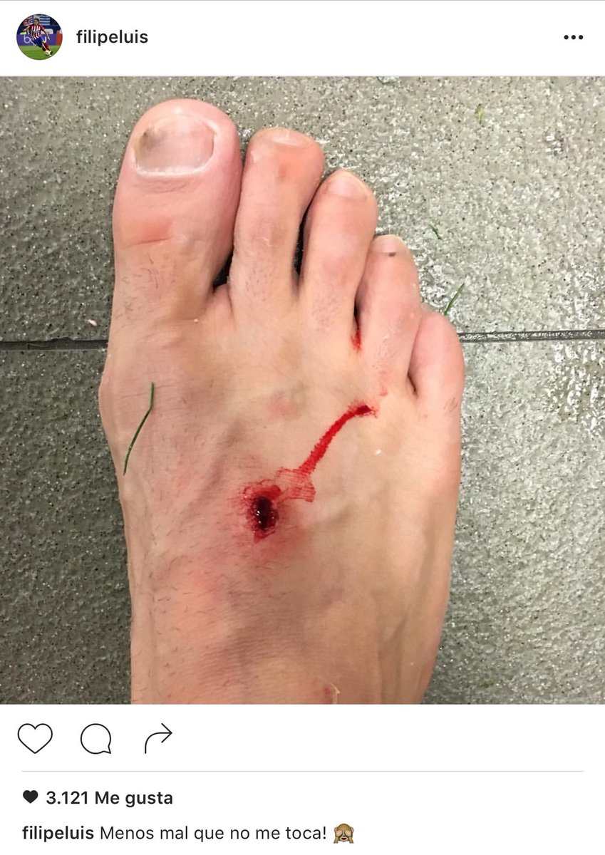 BRATISLAVA. Z priehlavku mu tiekla krv, akoby mu nohu niekto prevŕtal klincom. Obranca Atlética Madrid Felipe Luis zverejnil na instagrame takúto fotku s textom: "Našťastie sa ma nedotkol." Iste, že to myslel ironicky.